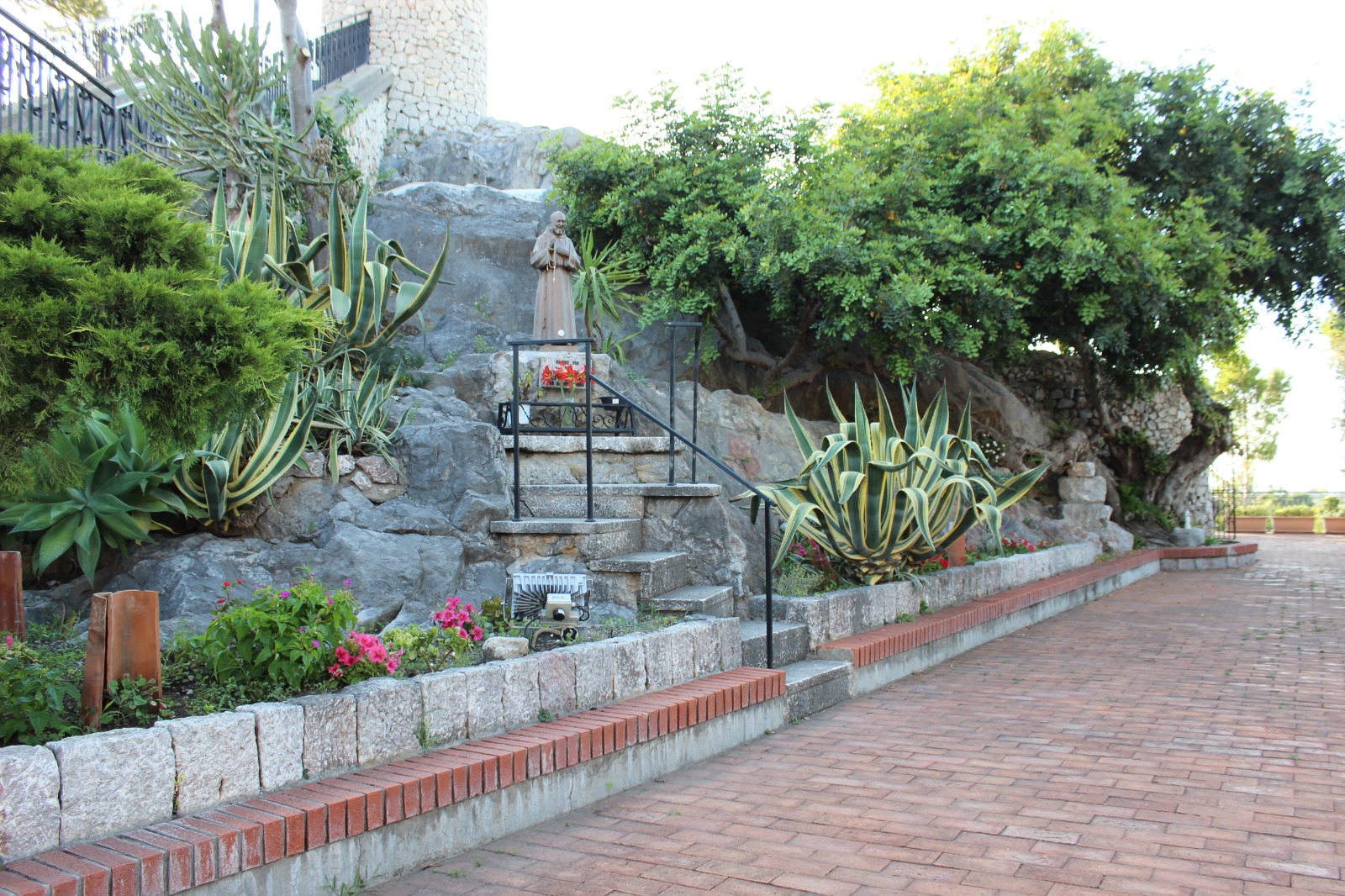 Entre la escalera principal y la nueva avenida se encuentra el edículo que alberga una pequeña estatua de la Virgen de Tindari después de la restauración de 1995, que devolvió la estatua a su configuración original. A la izquierda se encontraba la estatua de San Pío (foto 9), ante el algarrobo centenario caracterizado por una gran rama horizontal.